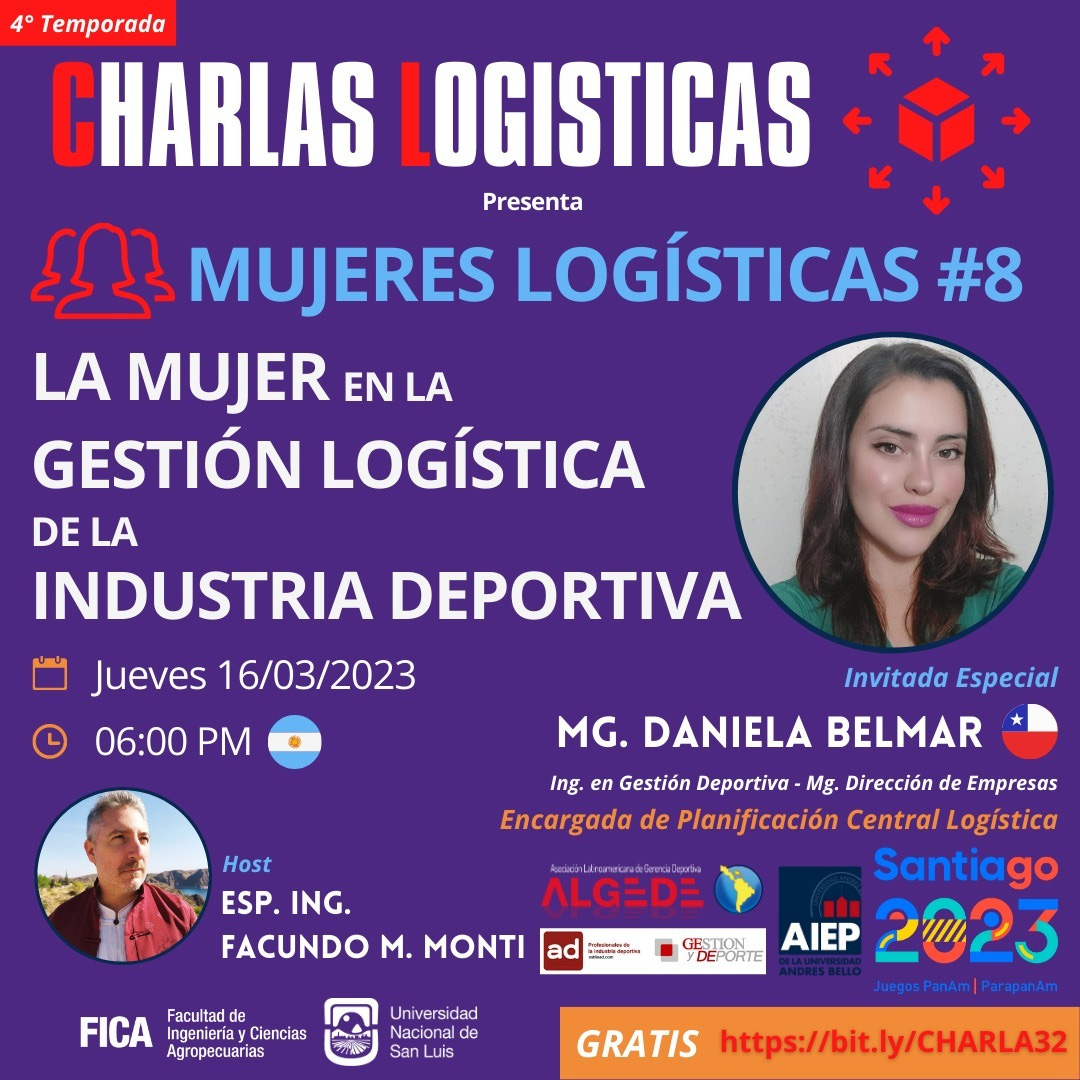 La nueva temporada comienza con la Charla #32, y en este caso junto a la 8° entrega del espacio dedicado a la Mujeres Logísticas: “La Mujer en la Gestión Logística de la Industria Deportiva”, a cargo de la Ing. Daniela Belmar Rodríguez.