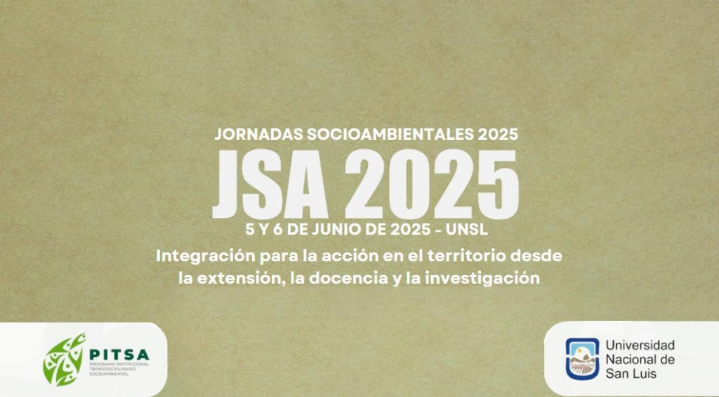 La Universidad Nacional de San Luis, el Programa Institucional Transdisciplinario Socioambiental (PITSA), tienen el agrado de invitar a las Jornadas Socioambientales 2025: “Integración para la acción…