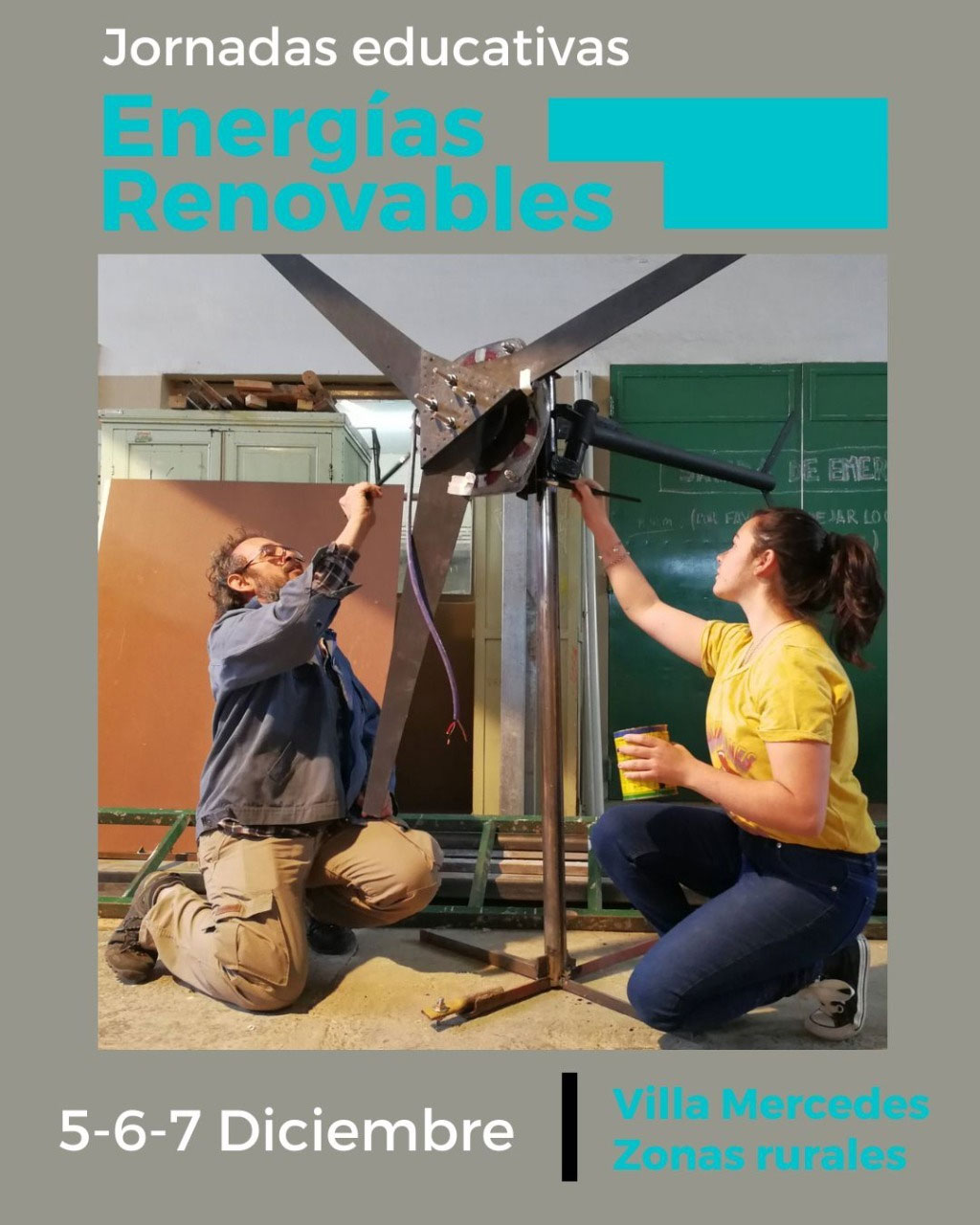 - Lunes 5 diciembre FICA, Villa Mercedes. Mantenimiento de aerogenerador y actividades demostrativas de energía eólica.