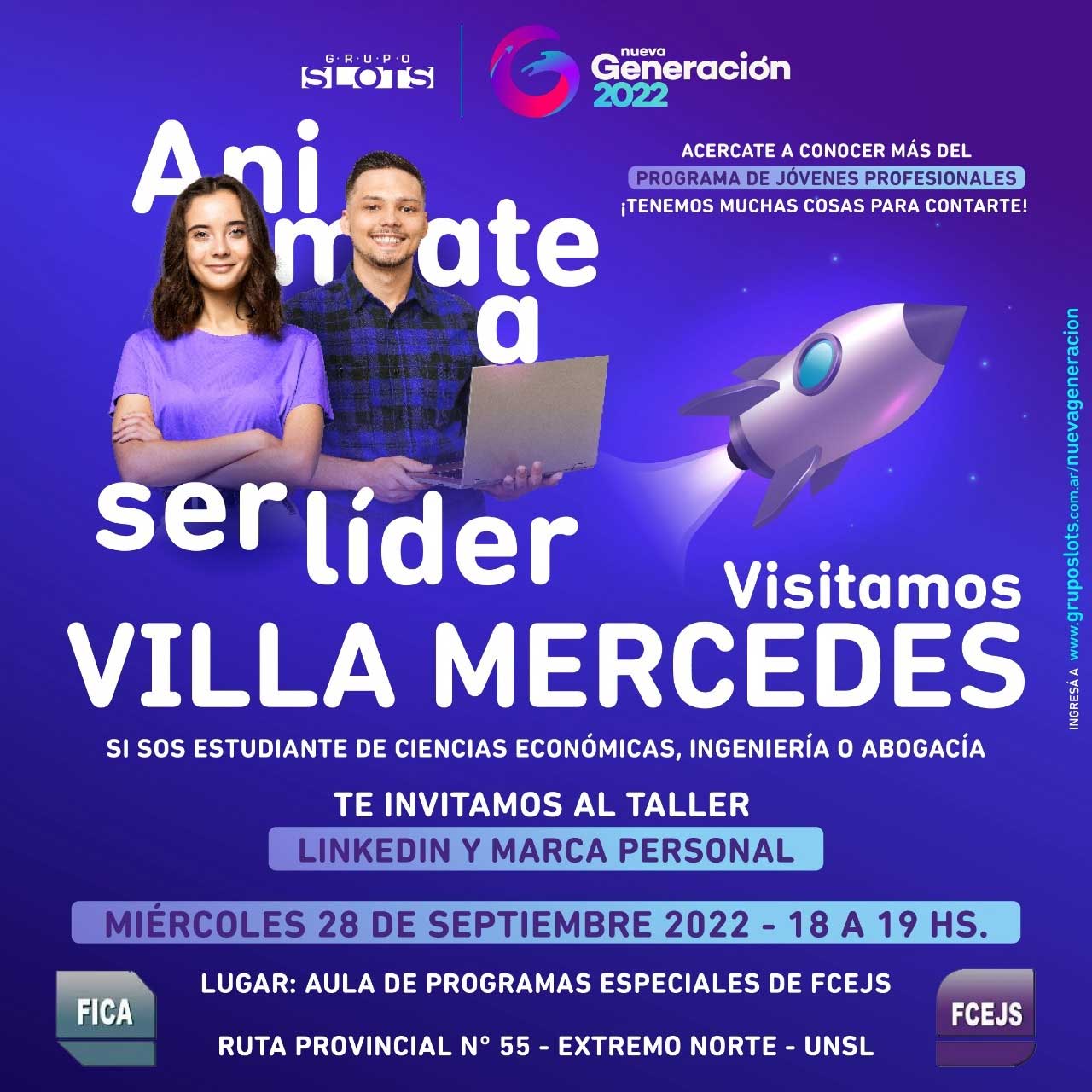 La Coordinación de Extensión, Vinculación y Transferencia convoca a estudiantes de 4° y 5° año de ingeniería a participar del taller que brindará la empresa Grupo Slots, sobre “Linkedin y Marca Personal”. El mismo se llevará a cabo en el edificio “Espacio Programas Especiales” de la FCEJS, este miércoles 28 de septiembre de 18 a 19 horas.