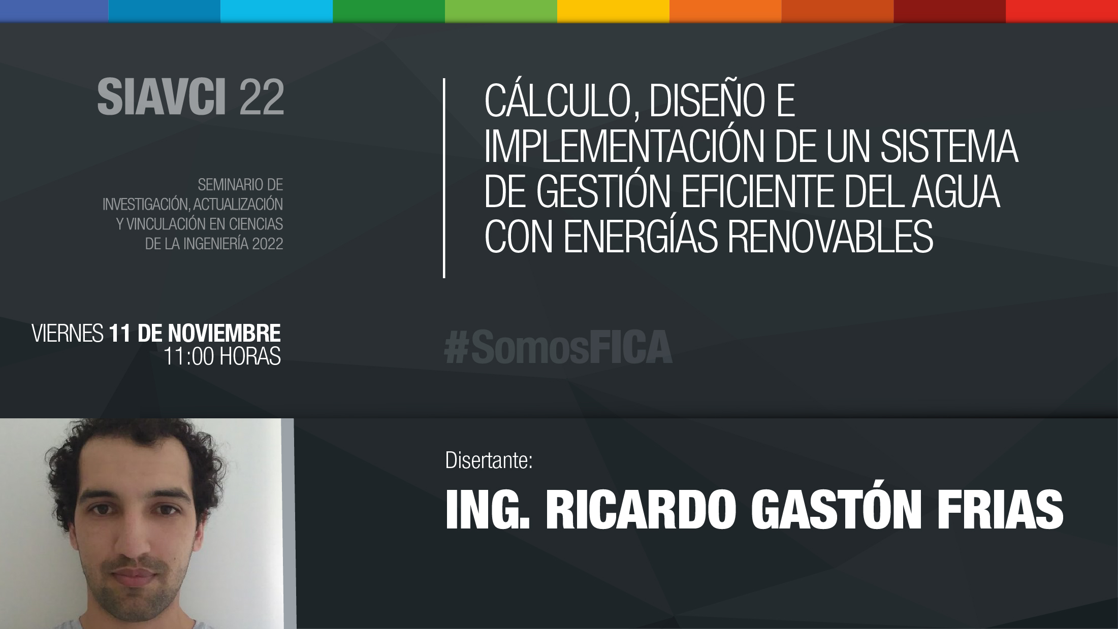 En primer turno disertará el Ing. Ricardo Gastón Frias sobre el “Cálculo, Diseño e Implementación de un Sistema de Gestión Eficiente del Agua con Energías Renovables”. A continuación, se presentará el Ing. Ángel Federico Miranda, quien tratará sobre la “Oxidación catalítica de COVs con intercambio recuperativo de calor. Estudio dinámico a lazo abierto”