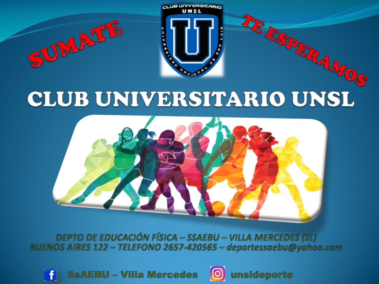 Por otra parte, el Departamento de Educación Física y Deportes informa que dieron inicio las Disciplinas Deportivas que se proponen desde el Club Universitario Universidad Nacional de San Luis, Centro Villa Mercedes. Invita a todos los estudiantes interesados acercarse al club y formar parte de las propuestas deportivas. Para más información sobre las diferentes disciplinas, consultar las placas adjuntas.